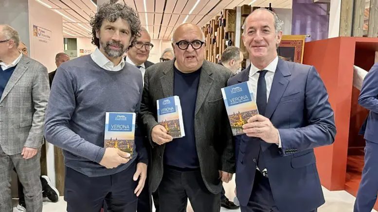Il padiglione della Regione Veneto a Vinitaly ha ospitato questa mattina, martedì, la presentazione della Guida di Verona realizzata da La Repubblica. La guida, realizzata in collaborazione con la Regione e con il patrocinio del Comune di Verona e Destination Verona & Garda Foundation, è il primo numero monografico della collana dedicata ai patrimoni Unesco del Veneto. Il volume racconta la città scaligera in 288 pagine ricche di itinerari, curiosità, interviste, focus sulle specialità enogastronomiche, foto d’epoca e tanti consigli su dove mangiare, dormire e fare acquisti nella zona.