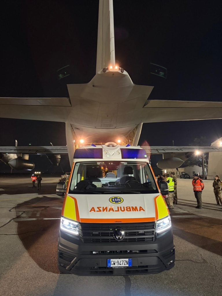 Gli adolescenti, un ragazzo di 14 anni e una ragazza di 13, sono atterrati all’aeroporto militare di Villafranca Verona alle 22.45 e sono stati immediatamente trasferiti con ambulanze del Suem 118 al Pronto soccorso pediatrico.