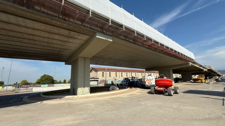 In merito ai lavori del sovrappasso, sono state rafforzate le campate con l’utilizzo di fibre di carbonio, così da aumentarne la resistenza e la durabilità. Sono state verniciate le colonne. La rotatoria di via Golino e via Pasteur, invece, sarà completata in forma definitiva entro fine anno.
