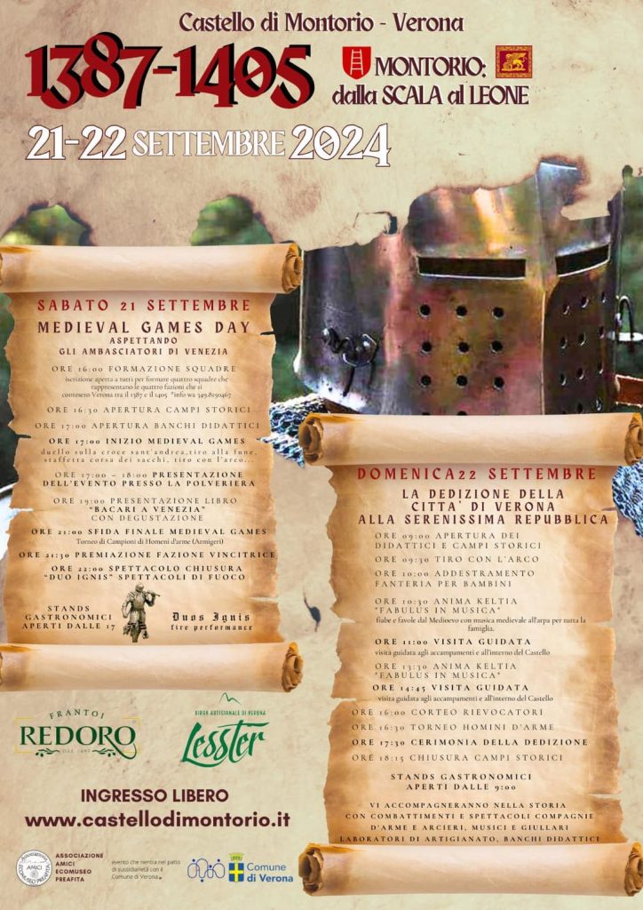Il 21 e 22 settembre, il castello di Montorio ospiterà una rievocazione storica intitolata “Montorio 1387-1405: Dalla Scala al Leone”. L’evento offrirà due giorni di full immersion nella storia medievale, con un ricco programma di attività e intrattenimenti.