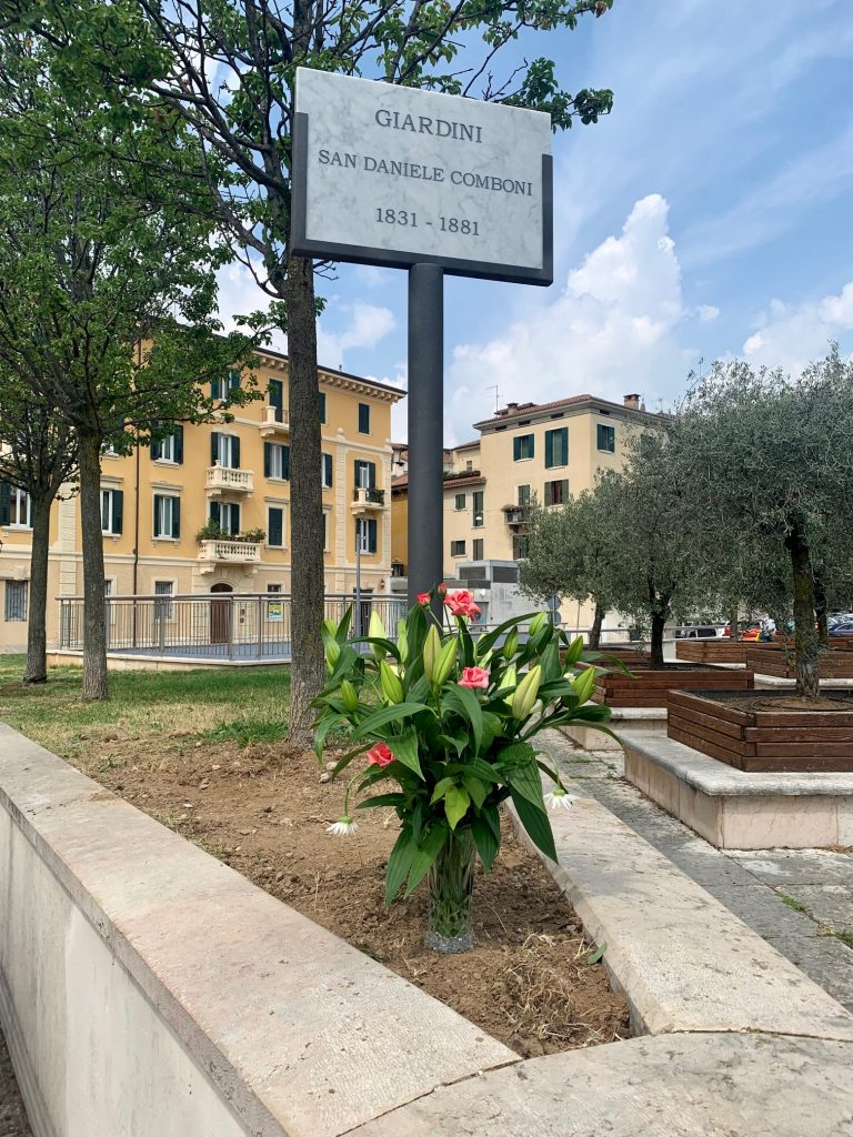 Giardini San Daniele Comboni 1831 – 1881: recita così la rinnovata targa che è stata riposizionata oggi in piazza Isolo, a Verona, a pochi metri dalla statua a lui dedicata, raffigurante il santo Comboni nell’atto di protezione di due giovani figli d’Africa, il continente a cui dedicò tutta la sua vita.