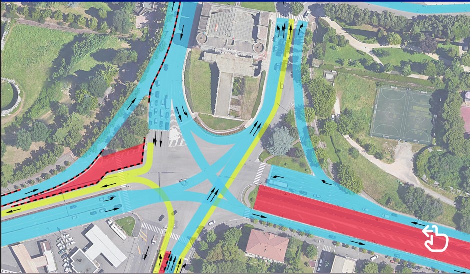 Dall’uscita della tangenziale T4-T9 non sarà più possibile andare verso Porta Palio, bensì ci sarà l’obbligo della svolta a destra su via Cardinale, che sarà a senso unico di marcia a due corsie (quindi si troverà il canale Camuzzoni sulla sinistra invece che sulla destra com’è attualmente).