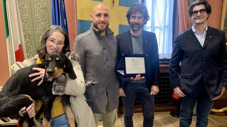 Un esempio di altruismo per il quale la città di Verona è loro riconoscente. I due sono stati premiati con una targa di ringraziamento dal sindaco Damiano Tommasi insieme al consigliere comunale con delega alla Tutela degli animali Giuseppe Rea, ‘Per il coraggio e l’amore verso gli animali dimostrato nel gesto nobile e valoroso’. Presente anche Virginia Beghini, accompagnata dal suo cane Milo.