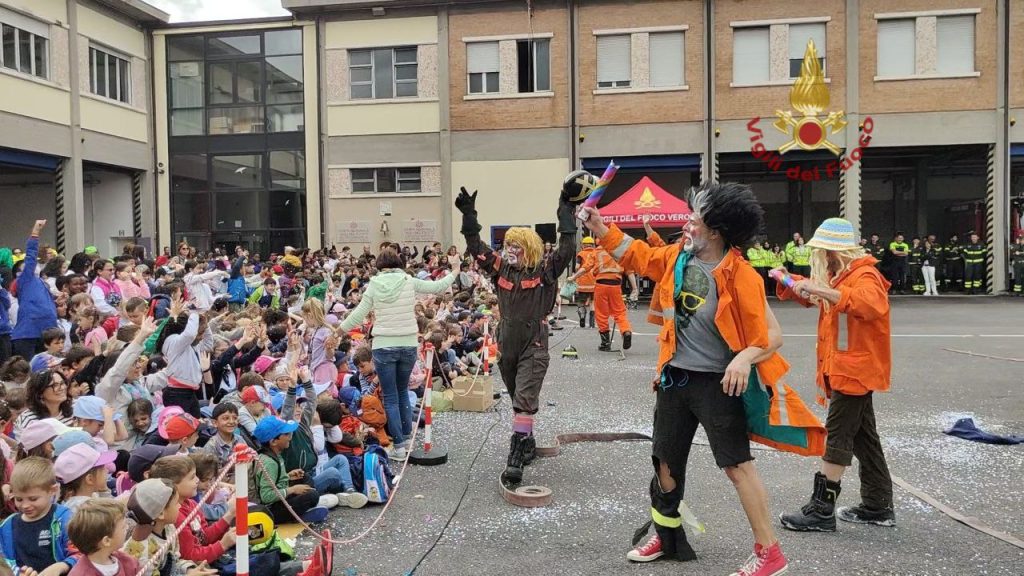Circa 1300 alunni delle scuole dell’infanzia e primaria di Verona e provincia hanno partecipato alla manifestazione dei vigili del fuoco.