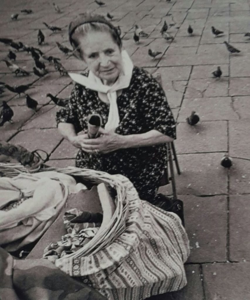 Erano gli anni 70’ quando a Verona la signora dei piccioni seduta davanti al suo banchetto in piazza Dante, vendeva il grano avvolto in coni di carta di giornale. Riguardandola molti “ex bambini” veronesi ricorderanno l’emozione di vedere un colombo posarsi sulla mano per beccare un po’ di cibo.