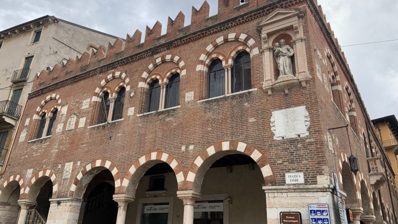 Il marchio Signorvino, fondato da Sandro Veronesi nel 2012, inaugura a Verona un nuovo punto vendita nella Domus Mercatorum, di fronte a piazza Erbe. Precedentemente, in quel medesimo spazio, c’era la storica filiale del Banco BPM, ora trasferita in piazza Nogara dopo la chiusura in marzo 2023. Sulle vetrine del nuovo locale spicca il logo della cantina, insieme ai cartelli, che annunciano l’imminente apertura, con la scritta “Opening Soon”.