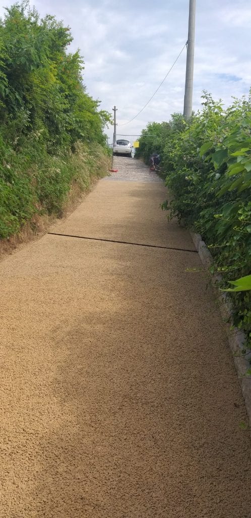 I lavori hanno sostanzialmente permesso di livellare la pavimentazione esistente chiudendo le profonde buche create dalle acque piovane e dal passaggio dei mezzi. Inoltre, su un tratti di circa 500 metri, è stato posato manto in calcestruzzo di tipo “drenante” di colore ocra chiaro, scelto per mitigare l’impatto dell’intervento in una zona collinare soggetta a vincoli paesaggistici ambientali.