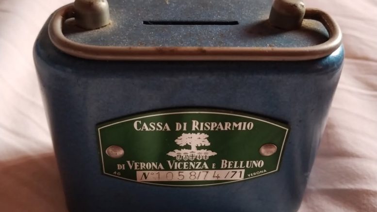 La “Musina”, il salvadanaio della Cassa di Risparmio di Verona, quella scatola blu con le mancette (e i sogni) dei bambini.
