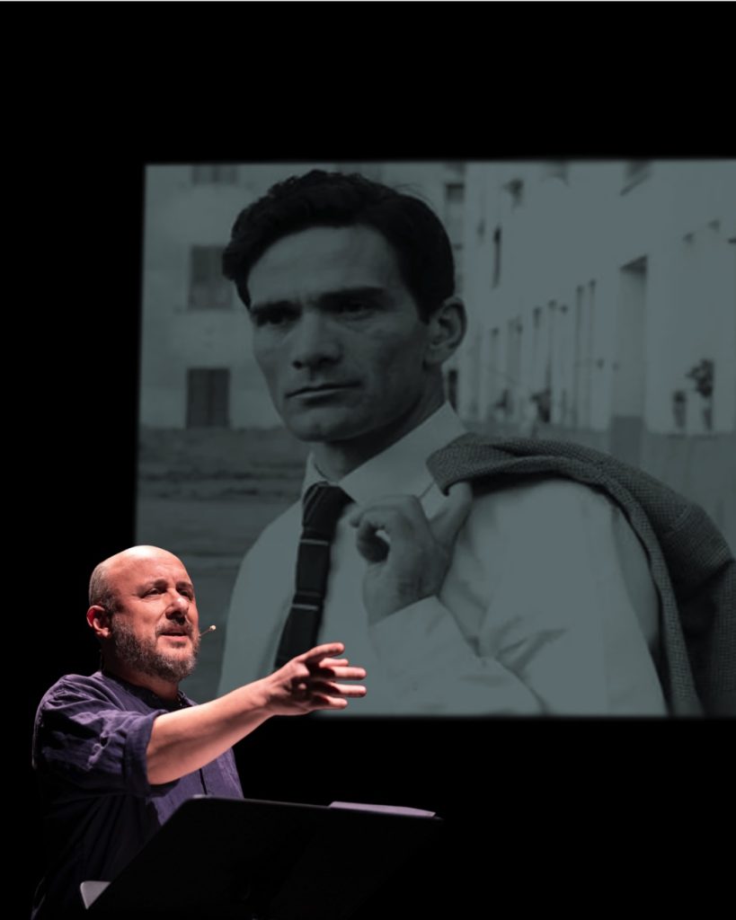 Pasolini, che nella sua opera ha saputo intrecciare impegno civile, ricerca linguistica e un’attenzione costante per le periferie sociali e culturali del Paese, viene qui celebrato attraverso le sue stesse parole. Il narratore si impegna a raccontare ciò che “non possiamo più permetterci di dimenticare“, dando voce all’intellettuale capace di leggere il presente con lucidità e di mettere a nudo le contraddizioni del potere e della modernità. Lo spettacolo è un mosaico emozionante costruito attraverso poesie, articoli, lettere, frammenti di film e romanzi. Pasolino rappresenta la voce che ha osato pronunciare ciò che pochi altri vedevano.