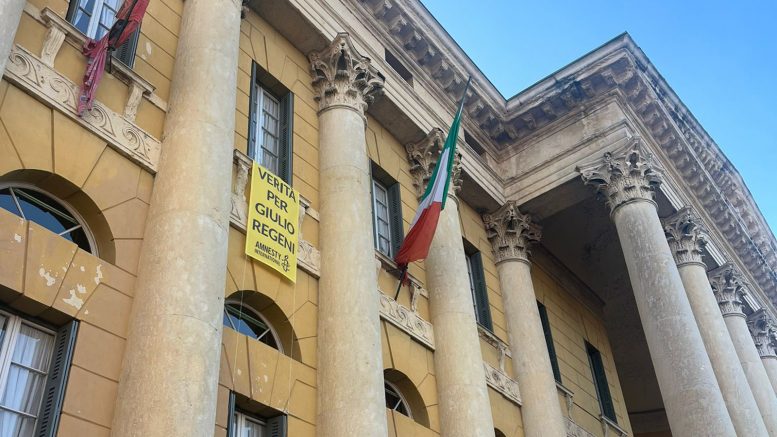 La frase ‘Verità per Giulio Regeni’ è diventata la richiesta di tanti enti locali, comuni italiani, ma anche università e luoghi di cultura che hanno esposto questo o altri simboli per chiedere l’impegno ad avere verità sulla morte di Giulio Regeni, il ricercatore italiano scomparso al Cairo il 25 gennaio 2016.