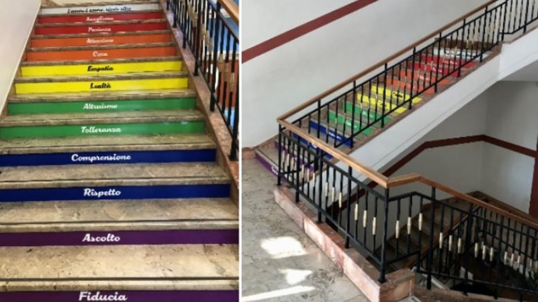 Un episodio accaduto in una scuola veronese accende il dibattito politico, e arriva fino al Ministero dell’Istruzione guidato da Giuseppe Valditara. Protagonista della vicenda è uno studente di una scuola media veronese che si sarebbe rifiutato di percorrere una scala decorata con i colori dell’arcobaleno e parole come “rispetto”, “tolleranza” e “accoglienza”, “comprensione”, “fiducia”, realizzata un anno fa su iniziativa degli studenti stessi per promuovere i valori di inclusione e lotta alle discriminazioni. Preferendo, pur di non calpestare quella scala arcobaleno, salire pericolosamente aggrappato al corrimano.