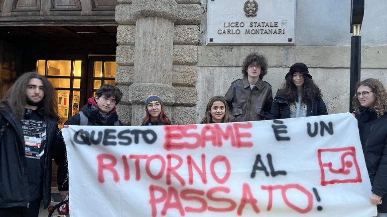 A Verona gli studenti sono scesi in strada, davanti al liceo Montanari, contro la maturità annunciata dal ministro dell’Istruzione Giuseppe Valditara. “Nelle scorse settimane il ministro Valditara – sostengono i rappresentati della Rete Studenti Medi di Verona – ha annunciato le modalità dell’esame di Stato 2023, fotocopia della Maturità 2019: buste all’orale, seconda prova con entrambe le materie d’indirizzo, prove Invalsi come criterio di ammissione”.