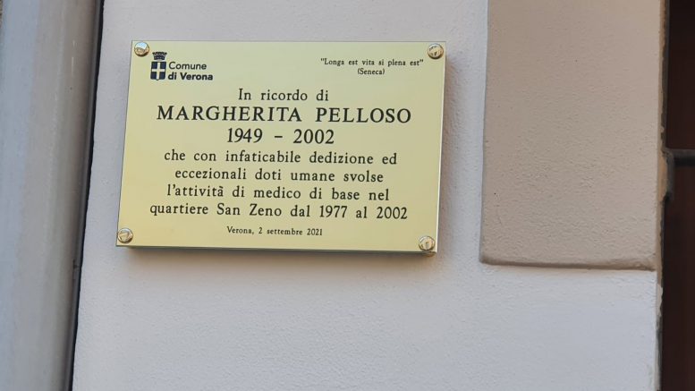 Verona ha scoperto una targa in ricordo di Margherita Pelloso, medico di San Zeno. Margherita Pelloso è stata per venticinque anni il medico dei sanzenati, arrivando al cuore dei suoi pazienti curandone il corpo. Una figura ‘straordinaria nell’ordinario’, il cui ricordo è ancora vivo nel quartiere e nei veronesi che l’hanno conosciuta. Un ricordo che da oggi rimarrà vivo per sempre, grazie alla targa posta sull’edificio che per oltre un ventennio ha ospitato lo studio medico della dottoressa Pelloso, nel cuore del quartiere di San Zeno.