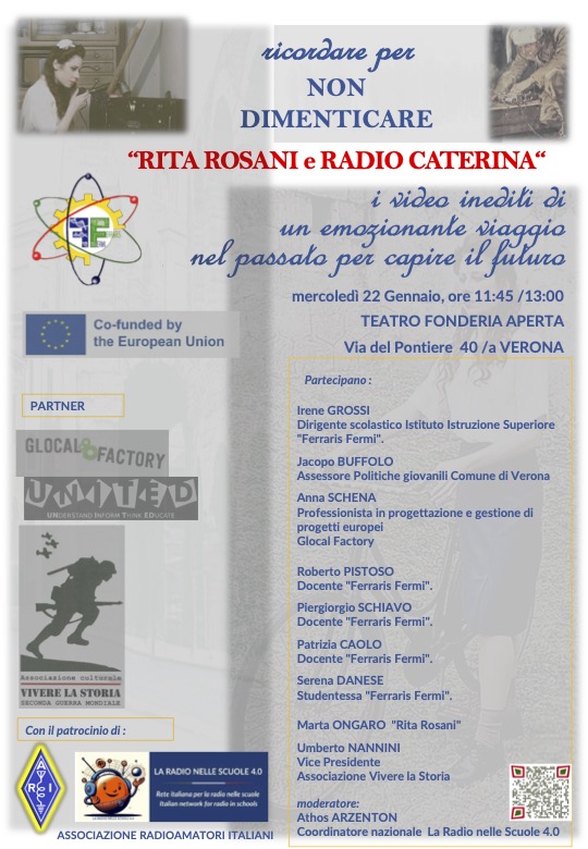 Il Ferraris Fermi è l’unica scuola italiana a partecipare al progetto, insieme a scuole e istituzioni culturali di Croazia, Polonia e Slovenia. Con il video dedicato a Rita Rosani, giovane partigiana e medaglia d’oro della Resistenza veronese, gli studenti vogliono ispirare i loro coetanei a riflettere sul passato per costruire un futuro migliore.
