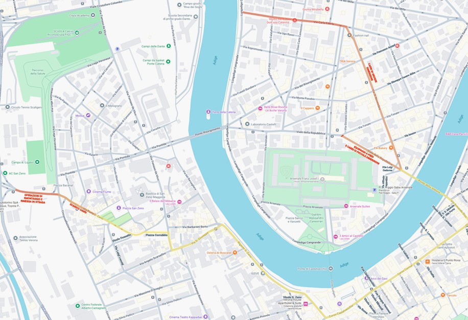 La sfilata attraverserà quindi Ponte della Vittoria, via Diaz, Corso Cavour, Corso Castelvecchio, Largo Don Bosco, via San Zeno in Oratorio, Regaste San Zeno, Piazzetta Portichetti e via San Giuseppe, per concludersi nell’area compresa tra piazza Corrubio, piazza Pozza e piazza San Zeno. Il percorso complessivo si sviluppa per circa 2,5 chilometri, con arrivo previsto indicativamente tra le 18.30 e le 19.00.