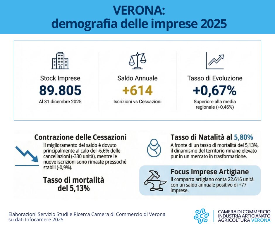 “Il sistema imprenditoriale veronese conferma la propria tradizionale solidità”, ha commentato Michelangelo Dalla Riva, segretario generale della Camera di Commercio.