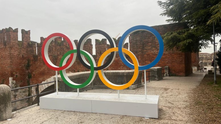 I cerchi olimpici dei Giochi di Milano Cortina 2026 sono arrivati a Verona.