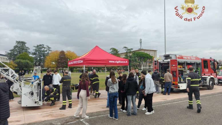 “Scuola Sicura”: esercitazione e lezione di emergenza dei vigili del fuoco all’Istituto Salesiano San Zeno di Verona.
