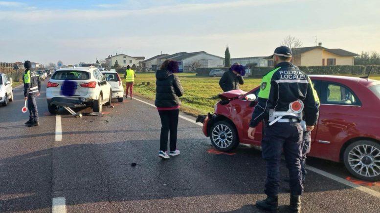 Una carambola fra quattro auto, per fortuna senza gravi conseguenze per i passeggeri delle vetture, si è verificata nella mattinata di oggi, giovedì 18 gennaio, sulla regionale a Villafranca. Erano circa le 9.30 quando le auto si sono scontrate, per cause ancora da accertare, mentre percorrevano la regionale 62 della Cisa. L’incidente è avvenuto al km 210+400, corsia di destra, nel territorio del comune di Villafranca di Verona in direzione Verona.